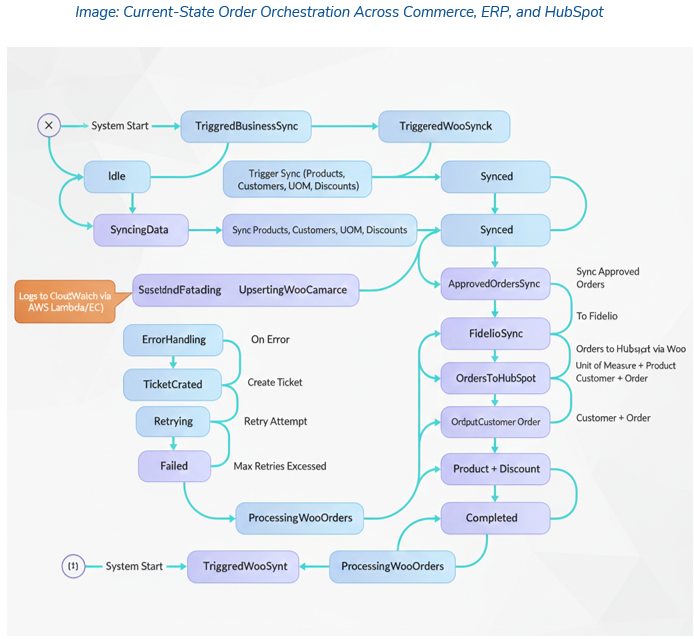 Image: Approved orders flow from HubSpot into Bioforce’s ERP, maintaining system-of-record integrity for fulfillment and finance.